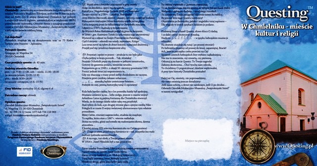 Nasz questing nosi nazwę „W Chmielniku – mieście kultur i religii”. Rozpoczyna się przy dawnej synagodze, przekształconej w Ośrodek Edukacyjno – Muzealny „Świętokrzyski Sztetl”, przy ul. Wspólnej 14. Czas przejścia questu to ok. 45 minut, a do zabawy potrzebny jest tylko ołówek. Korzystanie z questu jest bezpłatne.